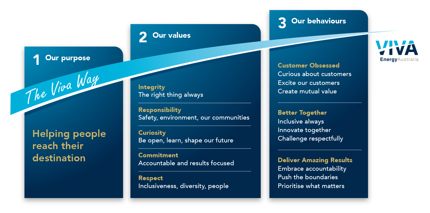 Learn more Careers Learn about career experiences at Viva Energy Australia, the benefits and rewards for employees at all career stages. Find out more Grow Find out how Viva Energy can help you grow through work that matters. Set your career destination and we’ll help you get there. Find out more Belong Discover why Viva Energy is an amazing organisation and a great place to be yourself. Join a team that values diversity. Find out more How to Apply Find all the information you need to know about how to apply for a role at Viva Energy. Find out more Graduate Program Learn more about the Viva Energy Graduate Program. Find out more